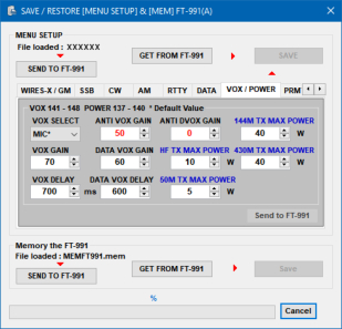 Sauvegarde / restauration du MENU SETUP et des mémoires du FT-991(A)
