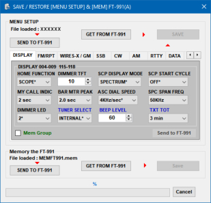 Sauvegarde / restauration du MENU SETUP et des mémoires du FT-991(A)